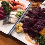 居酒屋まるよし - 刺身盛り合わせ 並(500円)、くじら刺し(800円)